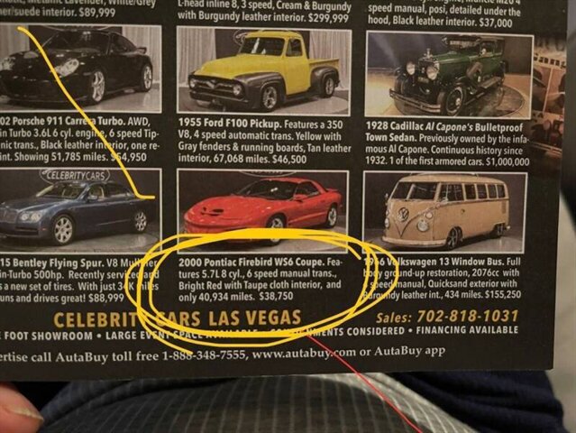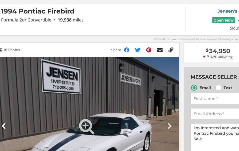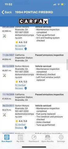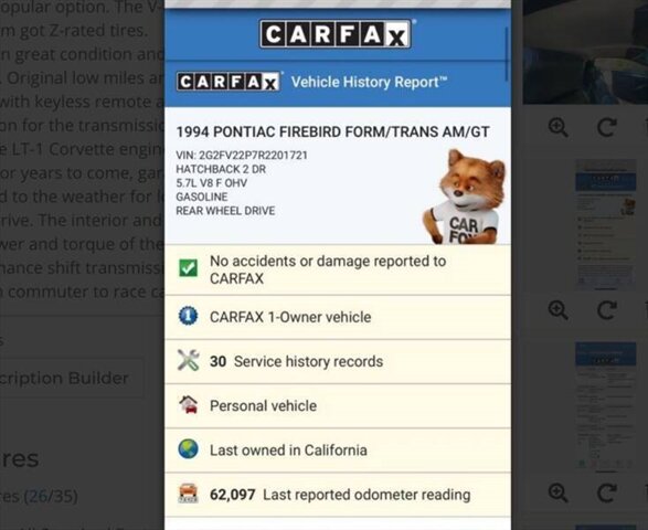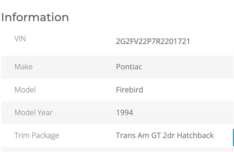 this 1994 has V8 with only 60k miles Spring Clearance Sale – vin# 2G2FV22P7R2201721... ... Purchase confidently and create enduring memories with your buy Investment Opportunity: Unlike Bitcoin's unpredictable fluctuations, the value of these classic cars only appreciates Bringing back the quintessence of American muscle from its roots 1993 Fourth-Generation Firebird: Base models with a V-6 Formula and Trans Am models with the 5.7-liter LT1 V-8, Transmission: Standard Borg Warner transmission Wheels: 16-inch wheels with Z-rated tires for Trans Am models Vehicle Condition: Operates flawlessly, cruising smoothly with its original low miles Passes smog effortlessly Equipped with keyless remote and a performance shift kit button for the transmission Driving Experience: The sheer power and torque of the 5.7 LT1 engine are awe-inspiring The performance shift transmission swiftly transforms the driving experience from a commuter to a race car driver with the push of a button An exhilarating drive overall Don't miss out on this exceptional vehicle and investment opportunity. Contact us today!