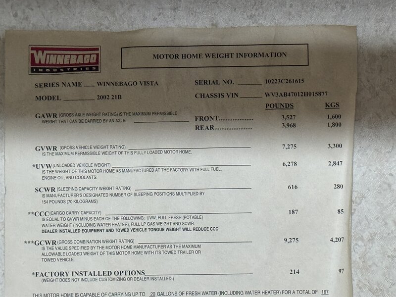 This super Beautiful 2002 Winnebago Vista 21B has earned a loyal following as one of the most unique and efficient small Class C motorhomes ever built. Designed on the front-wheel-drive Volkswagen Eurovan chassis with the powerful and reliable 2.8L VR6 engine, the Vista 21B offers car-like handling and an incredible 18–21 MPG, making it far more fuel-efficient than most motorhomes in its class. Measuring just 21 feet, it’s compact enough for city driving and easy parking, yet its smart interior layout can comfortably sleep up to 5 people, making it perfect for families or friends on the go. Its combination of nimble size, excellent fuel economy, and full Class C amenities—including a bathroom with shower, kitchen, and multiple sleeping areas—has made the Vista 21B a rare and highly desirable RV. With production limited and surviving examples becoming harder to find, this model continues to grow in popularity among collectors and travelers who want maximum usability in a compact, economical package.....