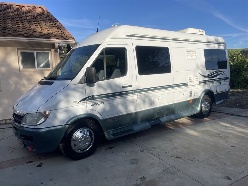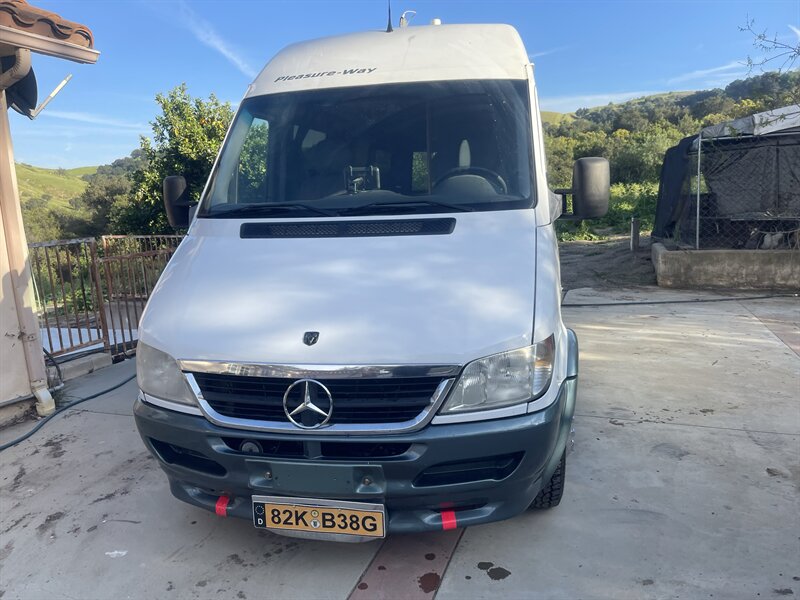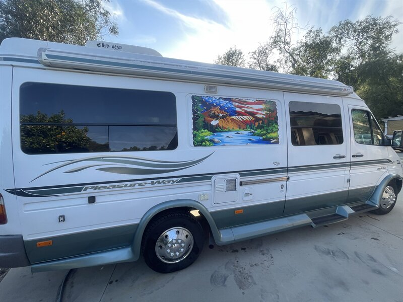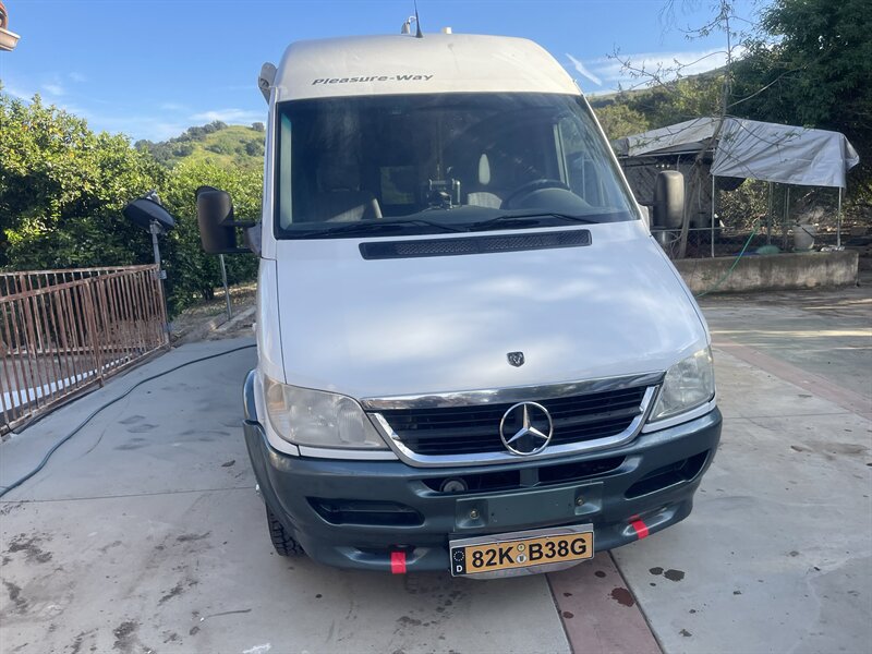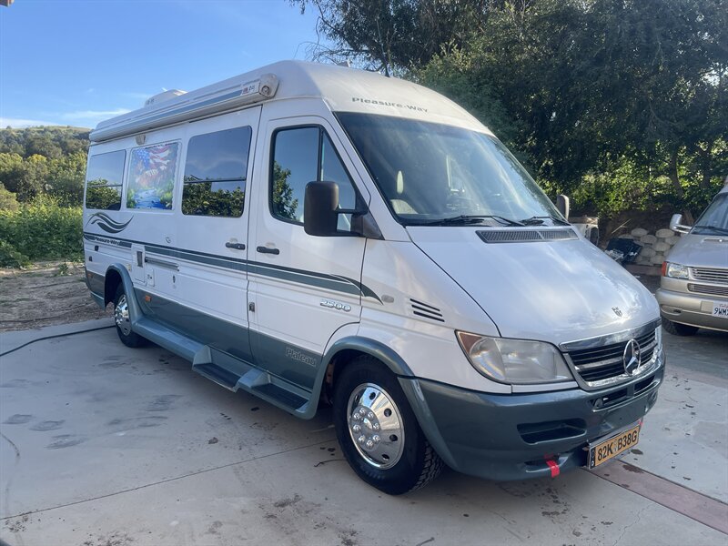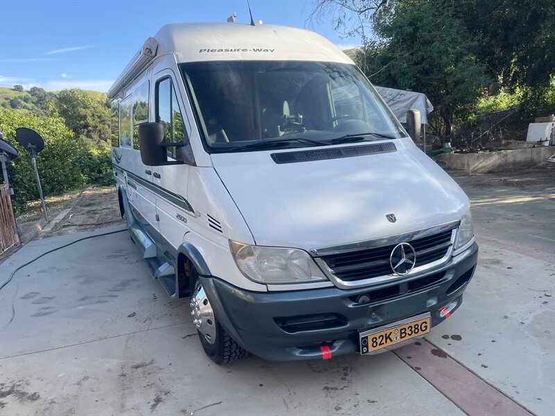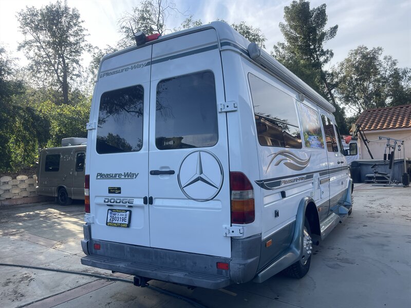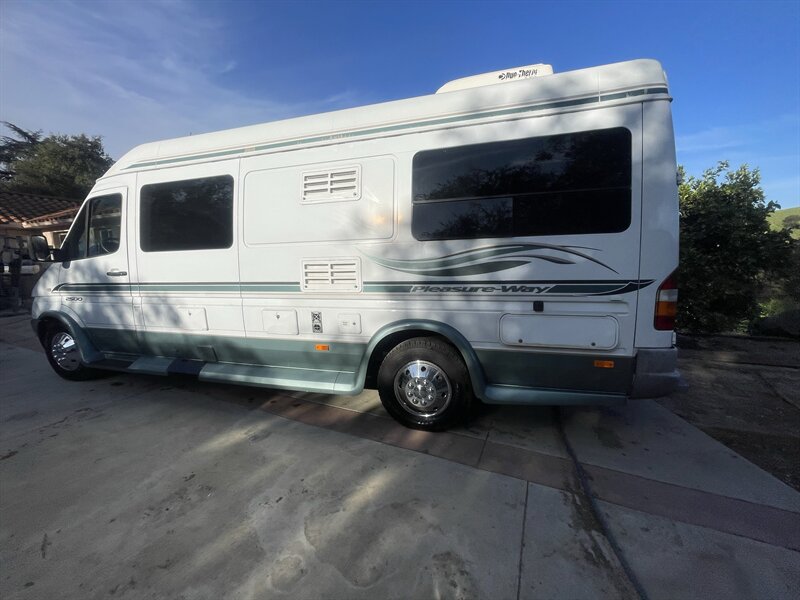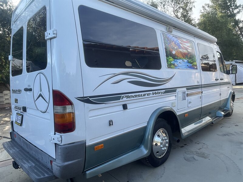 This 2004 Pleasure-Way Plateau TS Class-B motorhome, built on the legendary 2003 Mercedes-Benz 2.7L 5-cylinder turbo diesel Sprinter, averages around 22 MPG and is easy to drive and park anywhere. The body shows 103k miles, while the replacement engine has only 50k miles installed by a professional San Diego Sprinter specialist after a rigorous inspection due to low power and an oil leak from the original motor. Recent improvements include $7,500 replacement engine, $2,000 new tires (100 miles), $3,000 new brakes, $300 new battery, $2,800 new underbody paint, $400 backup camera, and the LP generator fully overhauled with only 67 hours ($1,800).