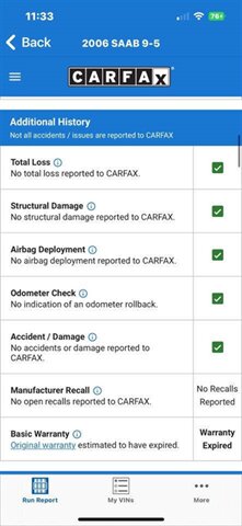WATCH THE WALKAROUND VIDEO OR TEXT US WILL SEND IT....CAR RUNS LOOKS DRIVES 100%. JUST HAD 50 POINTS INSPECTION AND NEW SHINY PAINT JOB ON ALL FADED PANELS TO MATCH THE TOP TOP FLAGSHIP ORIGINAL SWEDISH SAAB.
