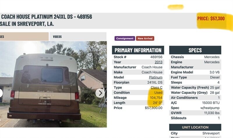 2011 Coach House Platinum II 241XL Step into one of the most coveted “small luxury” motorhomes ever built – the Coach House Platinum II 241XL. Built in Nokomis, Florida by a boutique manufacturer that hand-builds a limited number of coaches per year, this isn’t a mass-market Class C – it’s a true Class B+ luxury touring coach. The Platinum II rides on the legendary Mercedes-Benz Sprinter 3500 chassis, powered by a fuel-efficient turbo-diesel engine known for reliability, torque, and real-world mileage that owners routinely report in the mid-teens to around 18–20 MPG, depending on load and driving style. Family RVing Magazine +1 At just about 25½ ft overall length,