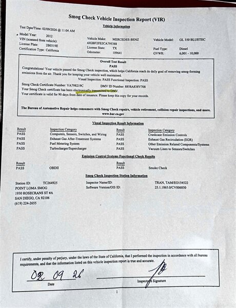 The 2012 Mercedes-Benz GL350 BlueTEC has earned a loyal following among diesel enthusiasts for good reason—it delivers the perfect balance of luxury, durability, and real-world efficiency. Powered by Mercedes’ proven 3.0-liter turbo-diesel V6, the GL350 offers massive low-end torque for effortless highway cruising, confident towing, and smooth mountain driving, all while returning impressive fuel economy for a full-size luxury SUV. The ride is solid and composed, the cabin is exceptionally quiet, and the build quality reflects Mercedes’ era of over-engineering, making it a favorite for families and long-distance travelers alike. Getting 4 new tires new transmission service new oil filter lube and getting new smog plz add $299 for DPS dealer title temp tag fee.