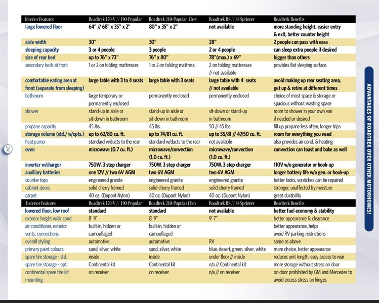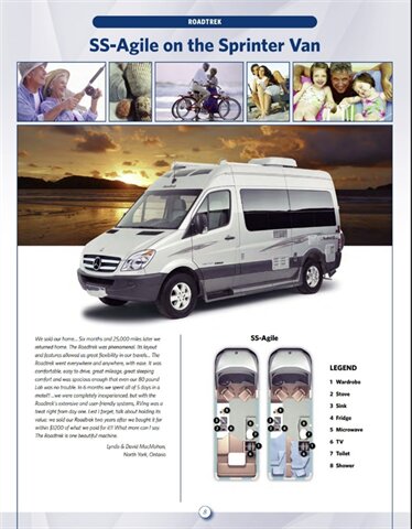 the rear sofa easily converts to a king-size bed or twin-like beds. The SS provides an unrivalled combination of use-every-day driving and parking ease with the conveniences of a fully-equipped motorhome. Compact exterior size… fantastic fuel economy… comfortable seating for five... interior openness and livability… and all the features of a typical motorhome. The possible uses are endless. Add the proven popularity of the Mercedes Sprinter and you’ve got another winner from Roadtrek! A Drive-Everyday Motorhome on the Mercedes “Short” Sprinter 9 I have owned two Roadtreks in the last 15+ years