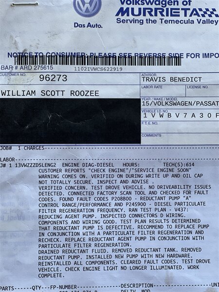 2015 Volkswagen Passat TDI Comfortline 6 speed
