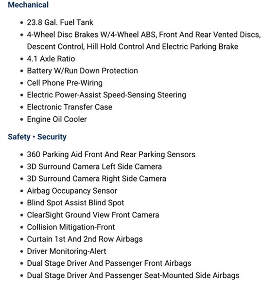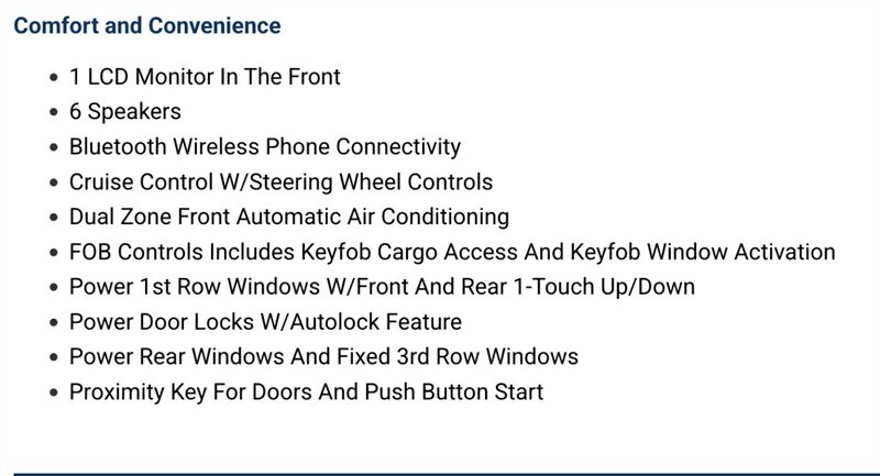 - Power outlet(s): 12V cargo area, 12V front, 12V rear, USB front, USB rear, USB-C front