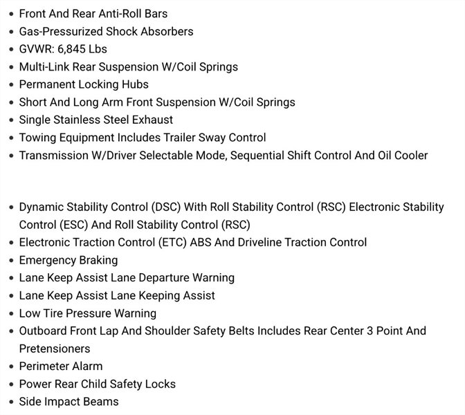 - Steering wheel mounted controls: audio, cruise control, multi-function, phone, voice control