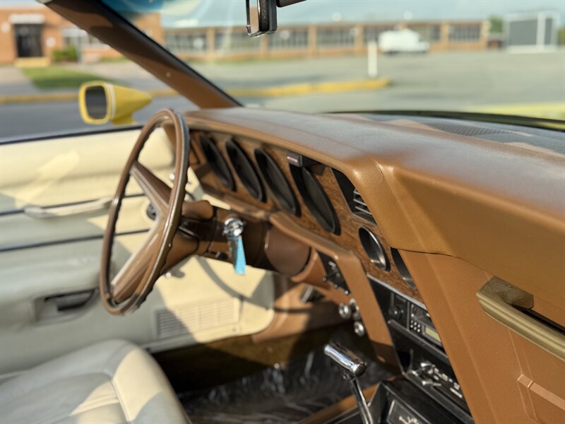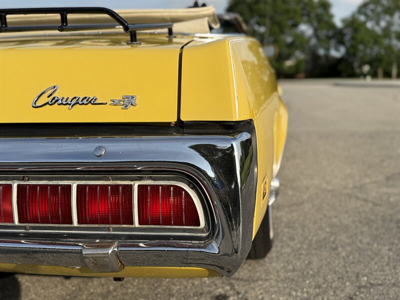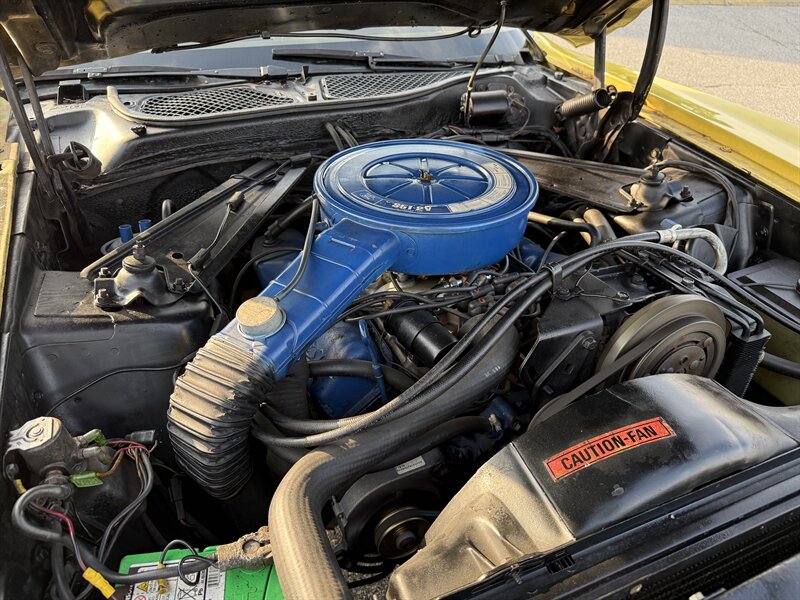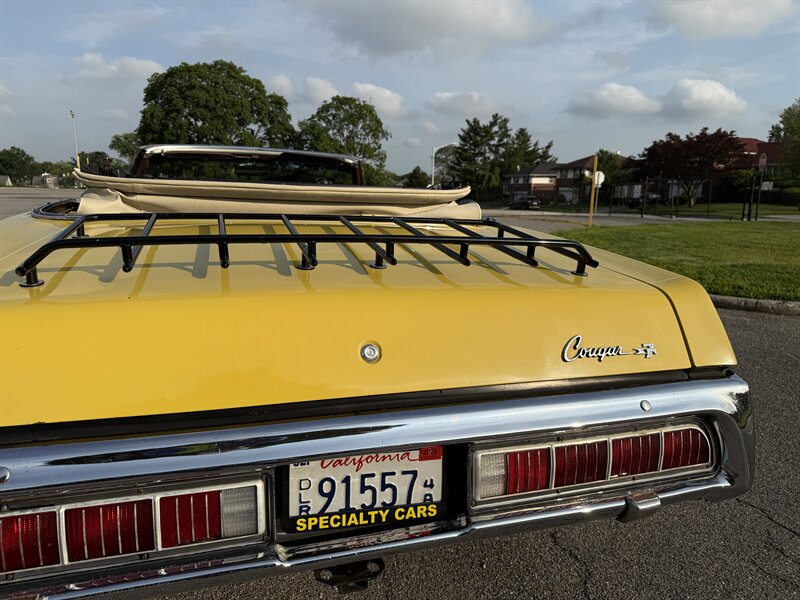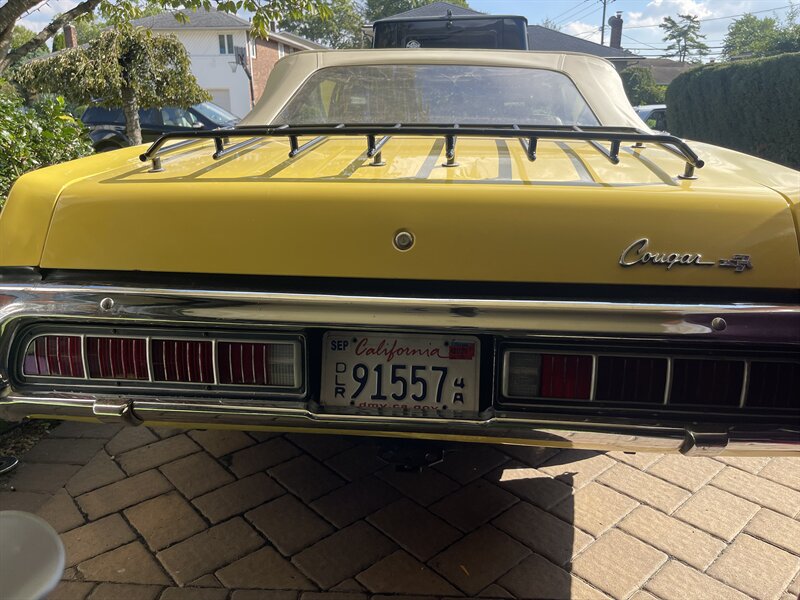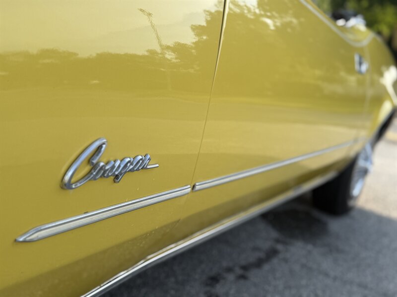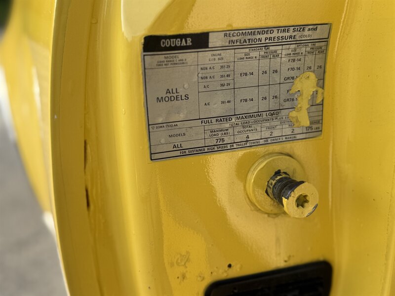 Ford and Mercury often used the same color codes across their lineup, so "Medium Bright Yellow" could also be found on Mustangs and Torinos.This well maintained original Cougar was sold new at Mayberry Lincoln Mercury in North Hollywood, California where it was well cared for by its 2 previous owners. This top-of-the-line XR7 model is equipped with leather bucket seats, AM 8-Track, special interior lighting, deluxe steering wheel, map pockets, full gauges with tachometer and factory air conditioning. The exterior sports a contrasting soft vinyl top, and dual color keyed racing mirrors. The odometer shows just over 52,000 miles on this well maintained and cared for example.