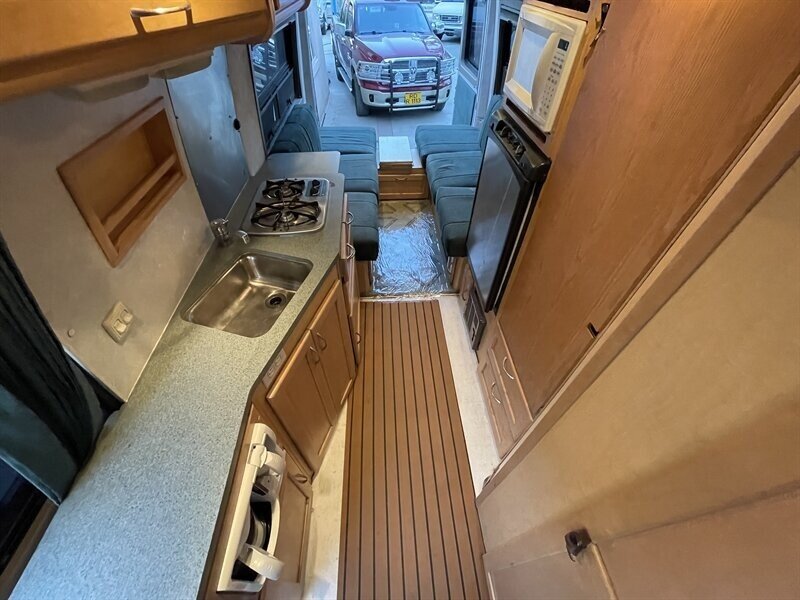 The 2.7 liter, 5 cylinder turbo diesel Sprinter van is easy to maneuver on the road and park in tight spaces, and averages 22 MPG. • Dometic 3-way Refrigerator, Inside, the Plateau is well-appointed with all the amenities you need for a comfortable road trip. The layout is designed to maximize space, with a kitchenette, bathroom, and sleeping area all neatly tucked into the compact floorplan. The kitchenette includes countertop, refrigerator, sink, 2-burner stove and microwave/convection oven, making meal prep and cleanup a breeze. The bathroom features a toilet, vanity, sink, and shower. The van also features a furnace, air conditioner, water heater, built-in generator and awning.